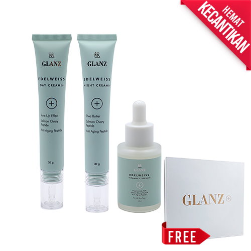 GLANZ+ yang diformulasikan dari ekstrak Edelweiss flowers, Lavendula stoechas extract, Salmon ovary peptide serta Hexapeptide-8, telah teruji secara klinis menjadikan kulit tampak lebih kencang & glowing dalam 7 hari